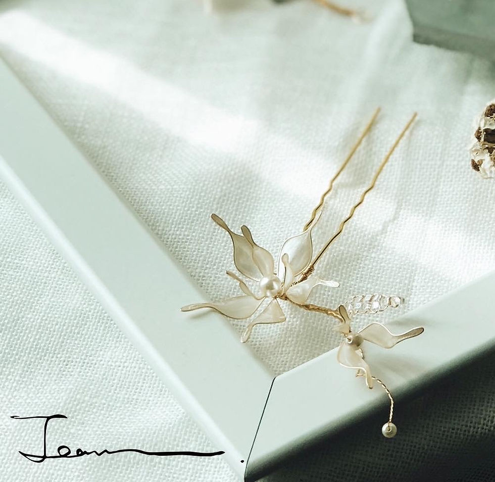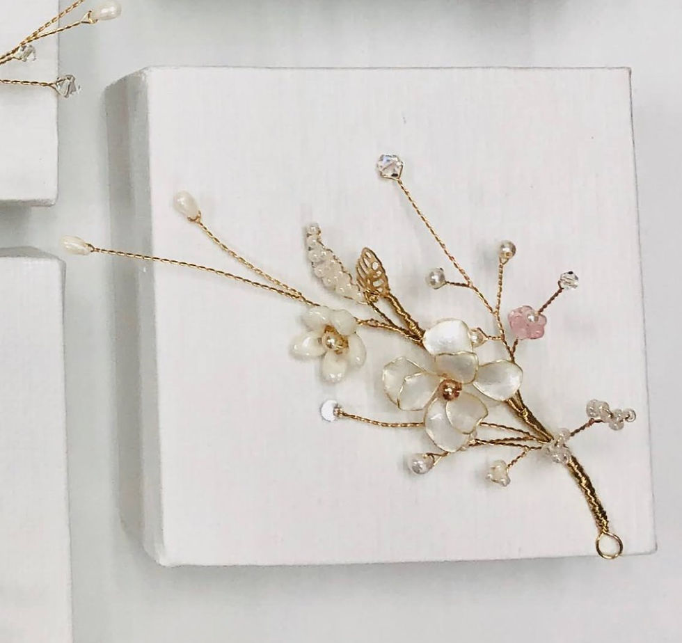 材料經常使用施華洛世奇的珍珠及水晶,國外設計之銅件, 鍍金,美國進口銅線, 高質感鍍金銅線, ,手作水晶花, 每朵花皆有獨特的姿態及美感, 因為每朵花皆為手工製作, 大小有些微差異, 皆為獨一無二, 另有捷克進口及日本進口等材料。